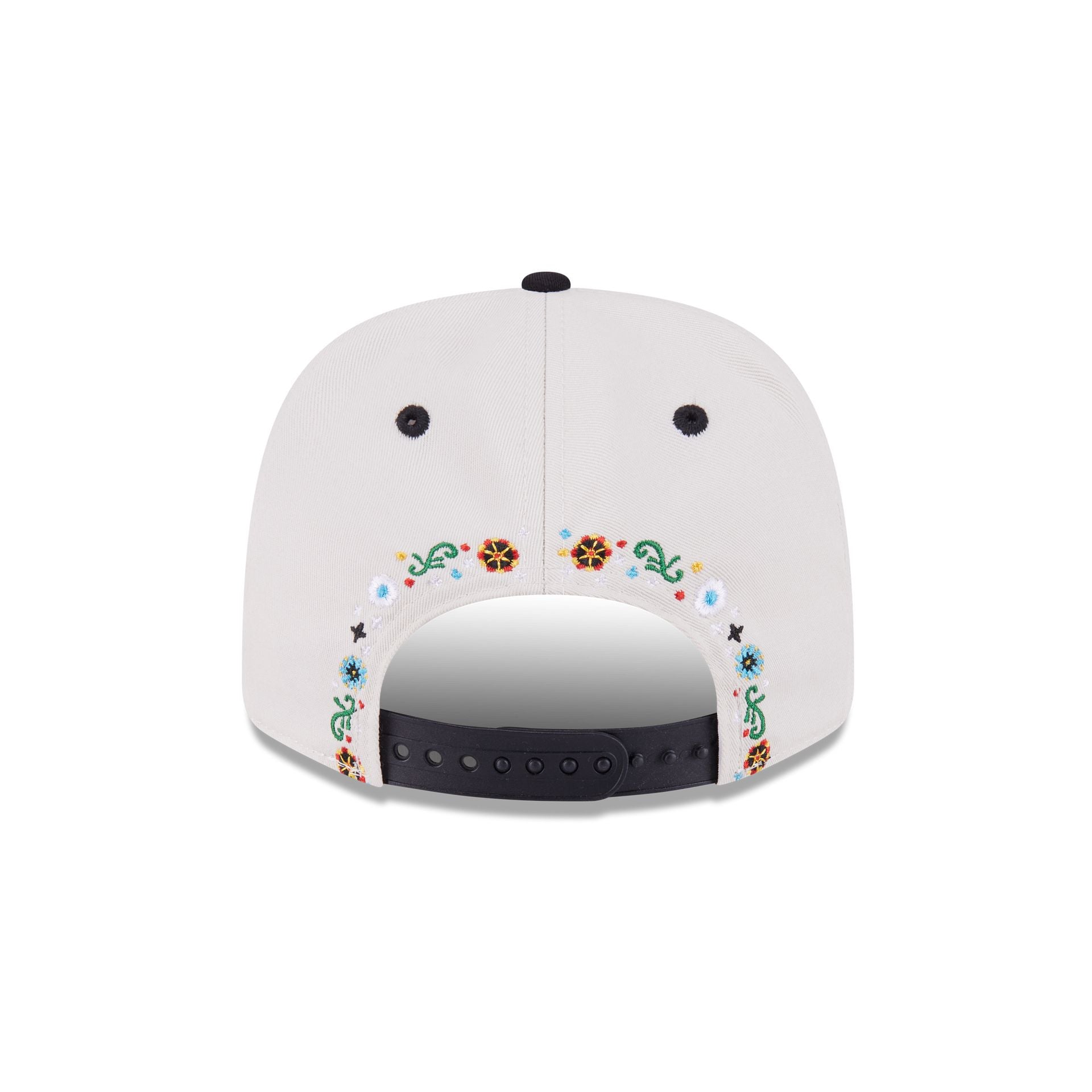 The MoneyGram Haas F1 Team 2025 Mexico City Race Special Esteban Ocon 9SEVENTY Stretch-Snap features an embroidered Haas F1 Team logo at the front panels with floral embroidery throughout the cap and a MoneyGram logo at the right-wear side. Additional details include the driver’s number at the visor and an adjustable stretch-snap closure at the rear and a gray undervisor.