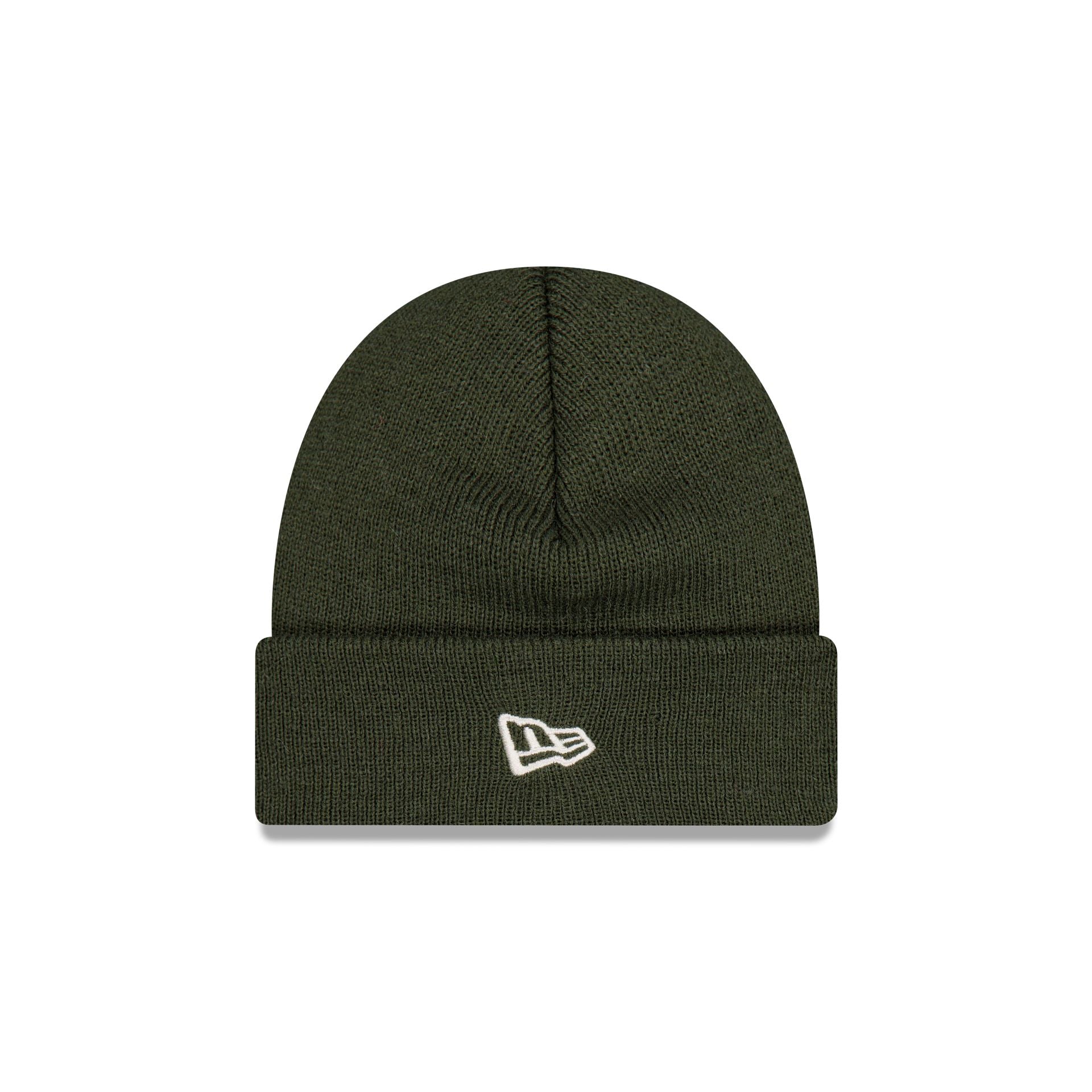 The New Era Olive Short Cuff Knit Beanie features an embroidered New Era Flag at the left-wear side.