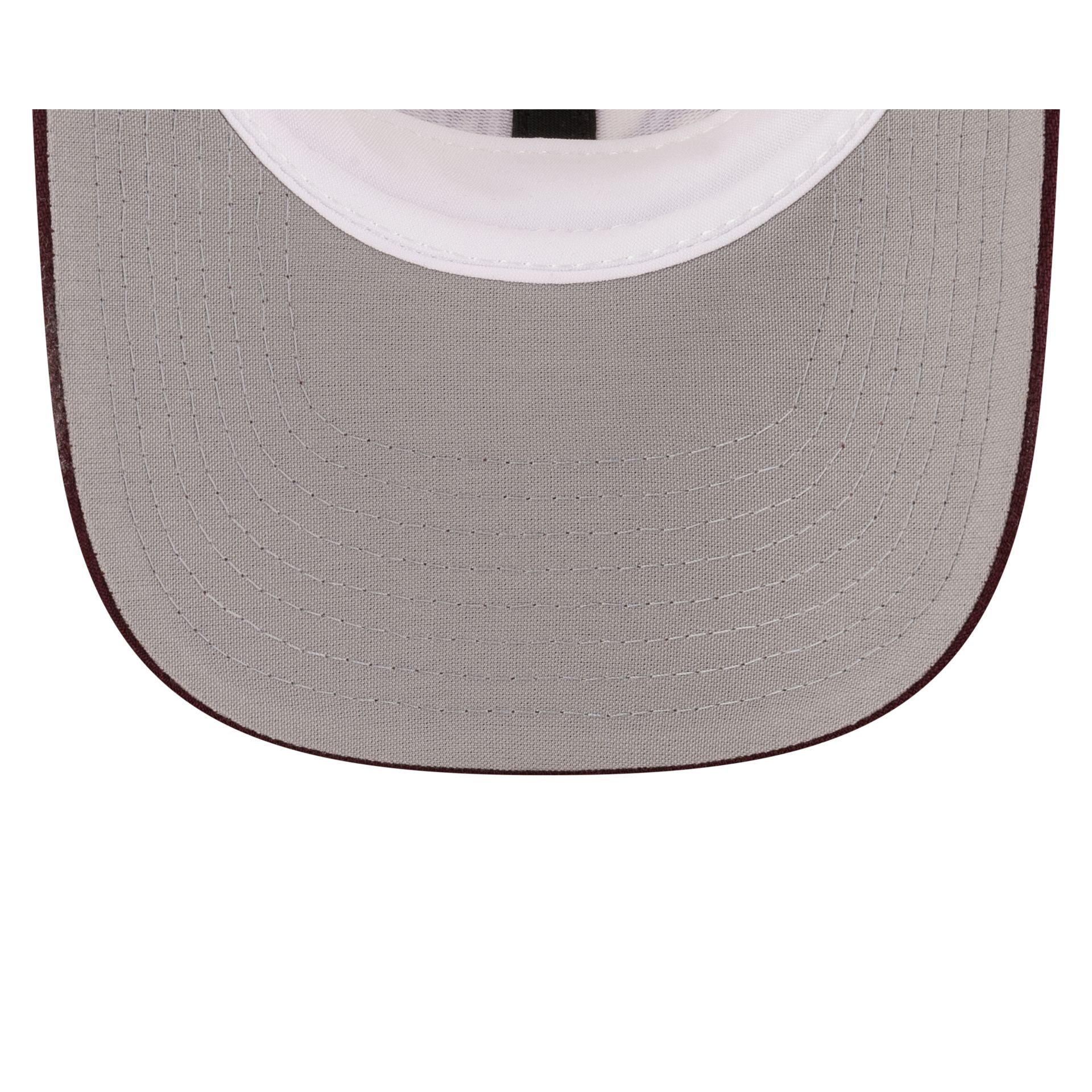 The Official On-Field cap for the Texas A&M Aggies baseball. the Chrome White 9SEVENTY Trucker features an embroidered Aggies logo at the front panels with the adidas logo above a snapback closure at a mesh rear and a gray undervisor.