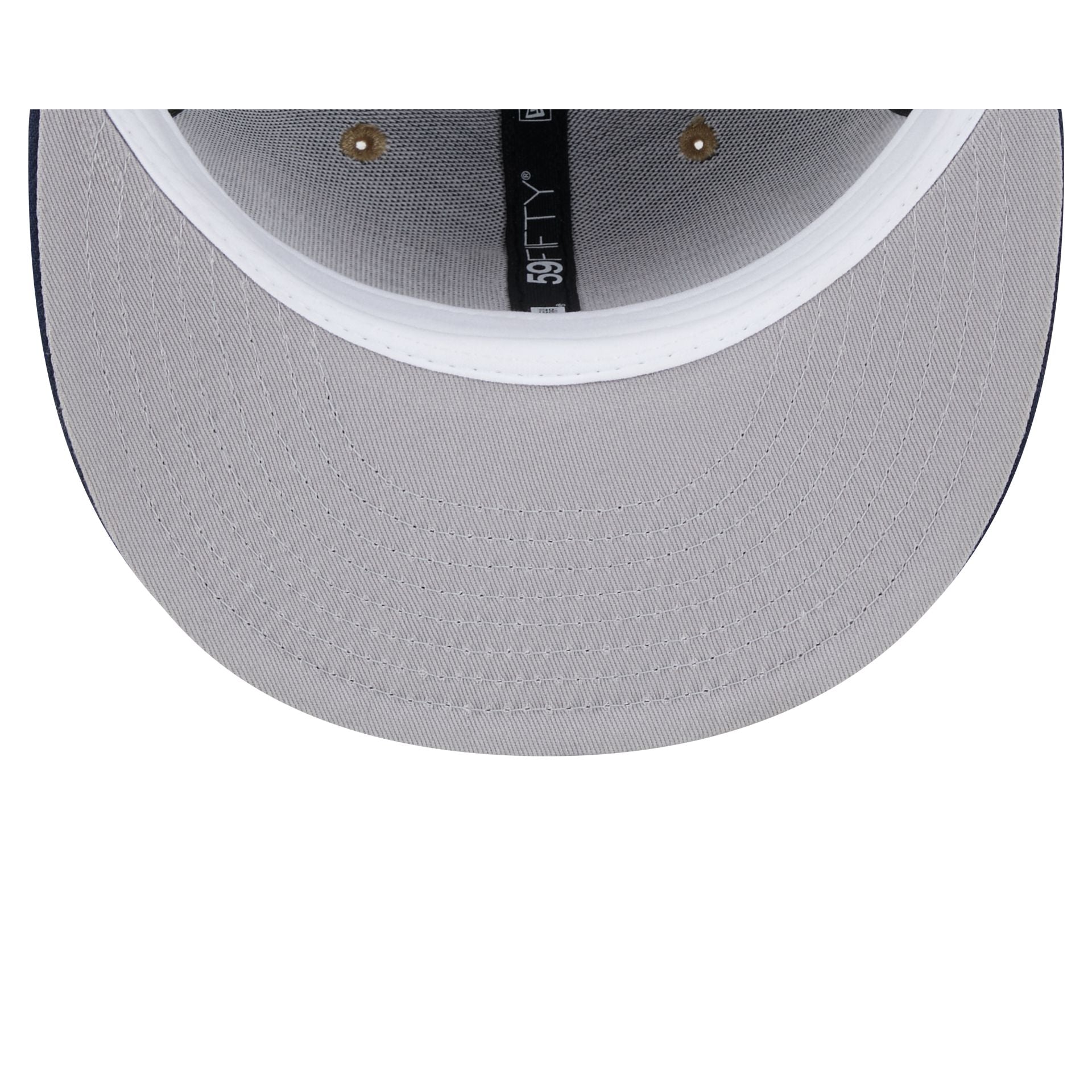 The New York Giants Classic 8-Bit Wordmark 59FIFTY Fitted Cap featured an embroidered Giants Historic 8-bit stitch wordmark at the front panels. Additional details include a team wordmark with a matching MLB Batterman logo at the rear and a gray undervisor.