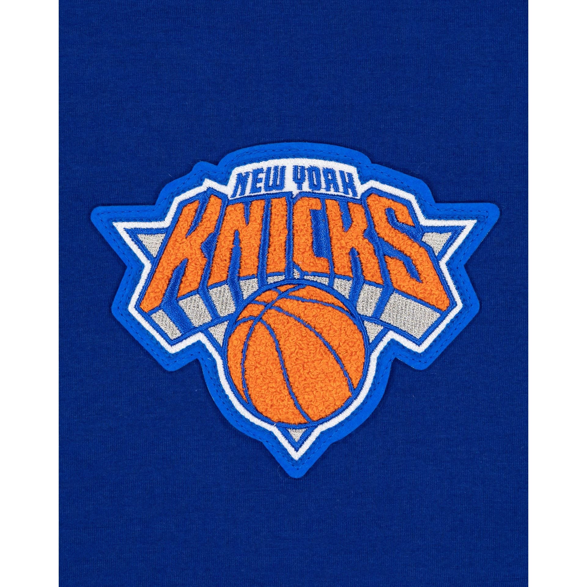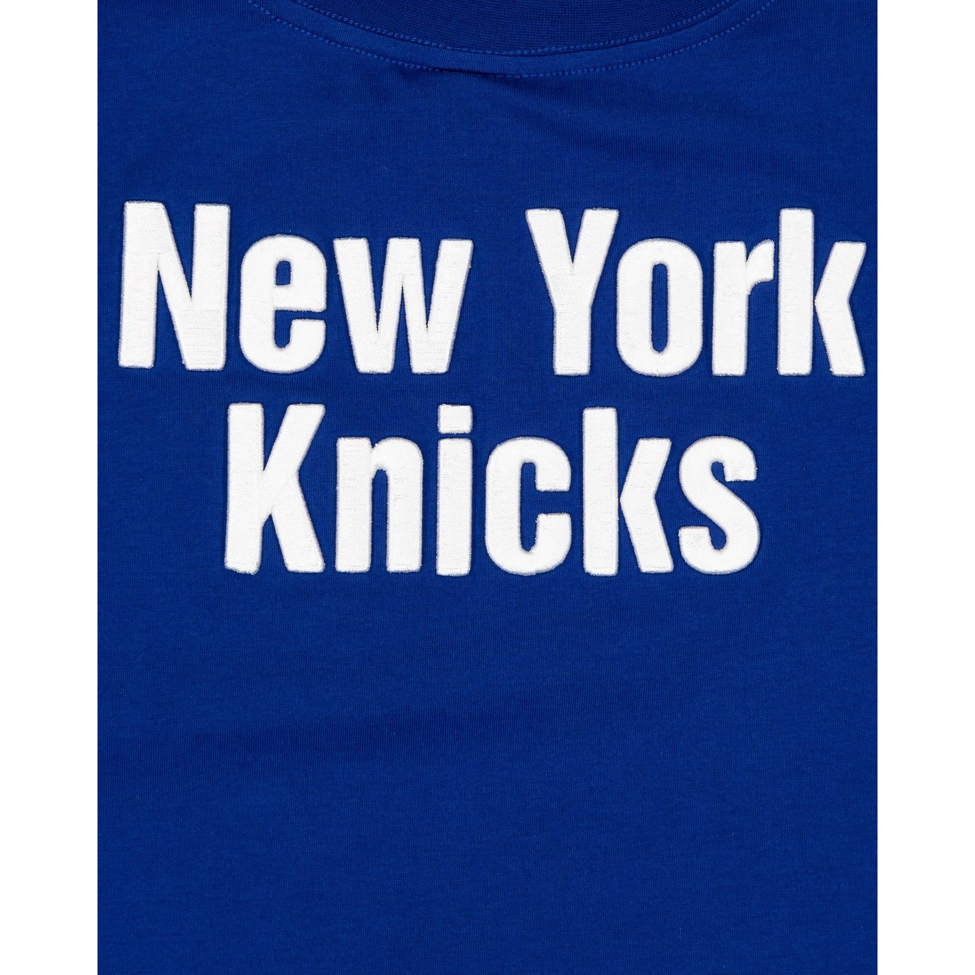 The New York Knicks Logo Select T-Shirt features a chenille applique Knicks logo at the left chest with team patches at each sleeve and an embroidered team wordmark at the rear.