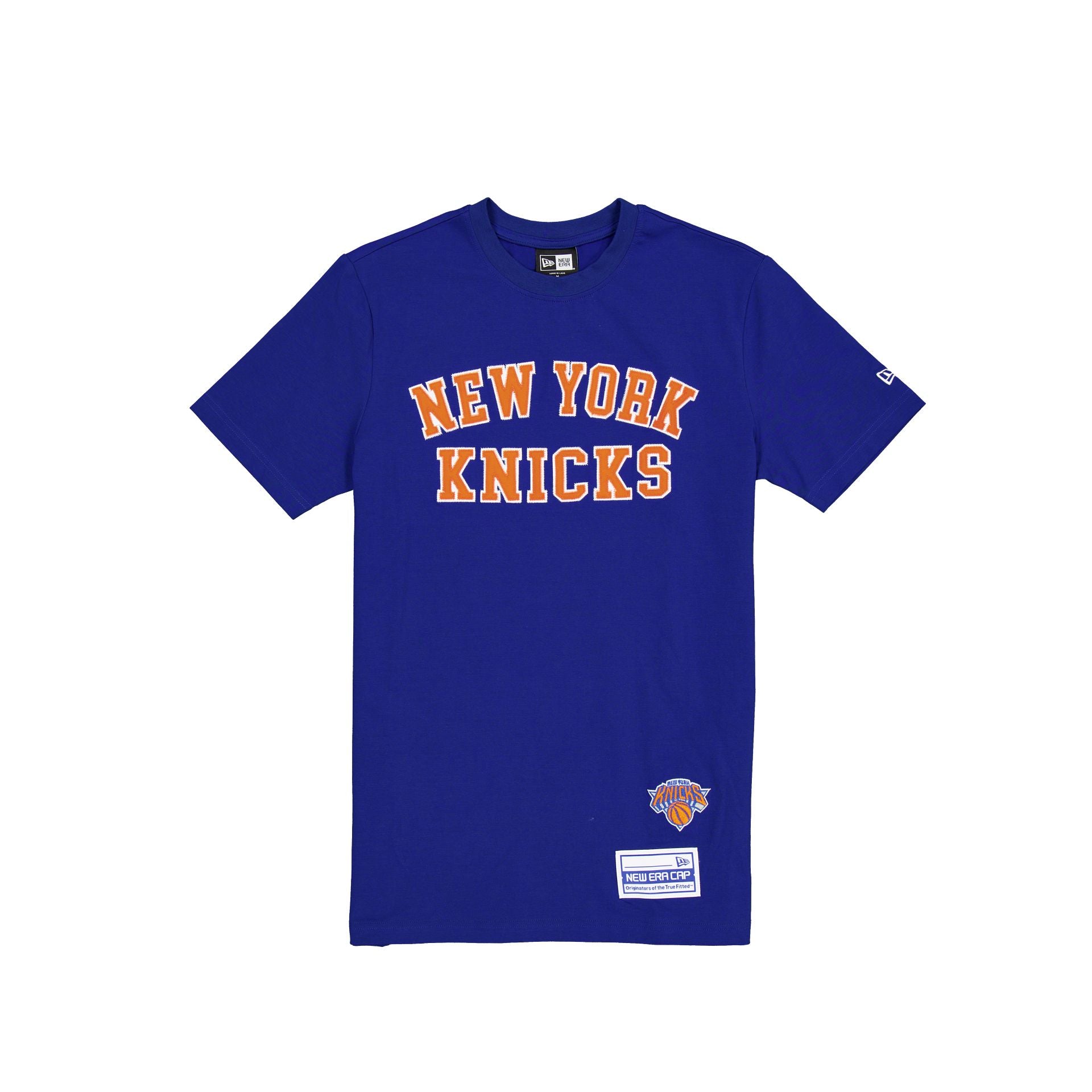 The New York Knicks Team Color Logo Select T-Shirt features a zig zag stitched twill applique Knicks wordmark at the chest with an embroidered team logo above a New Era Cap jock tag at the left hip.