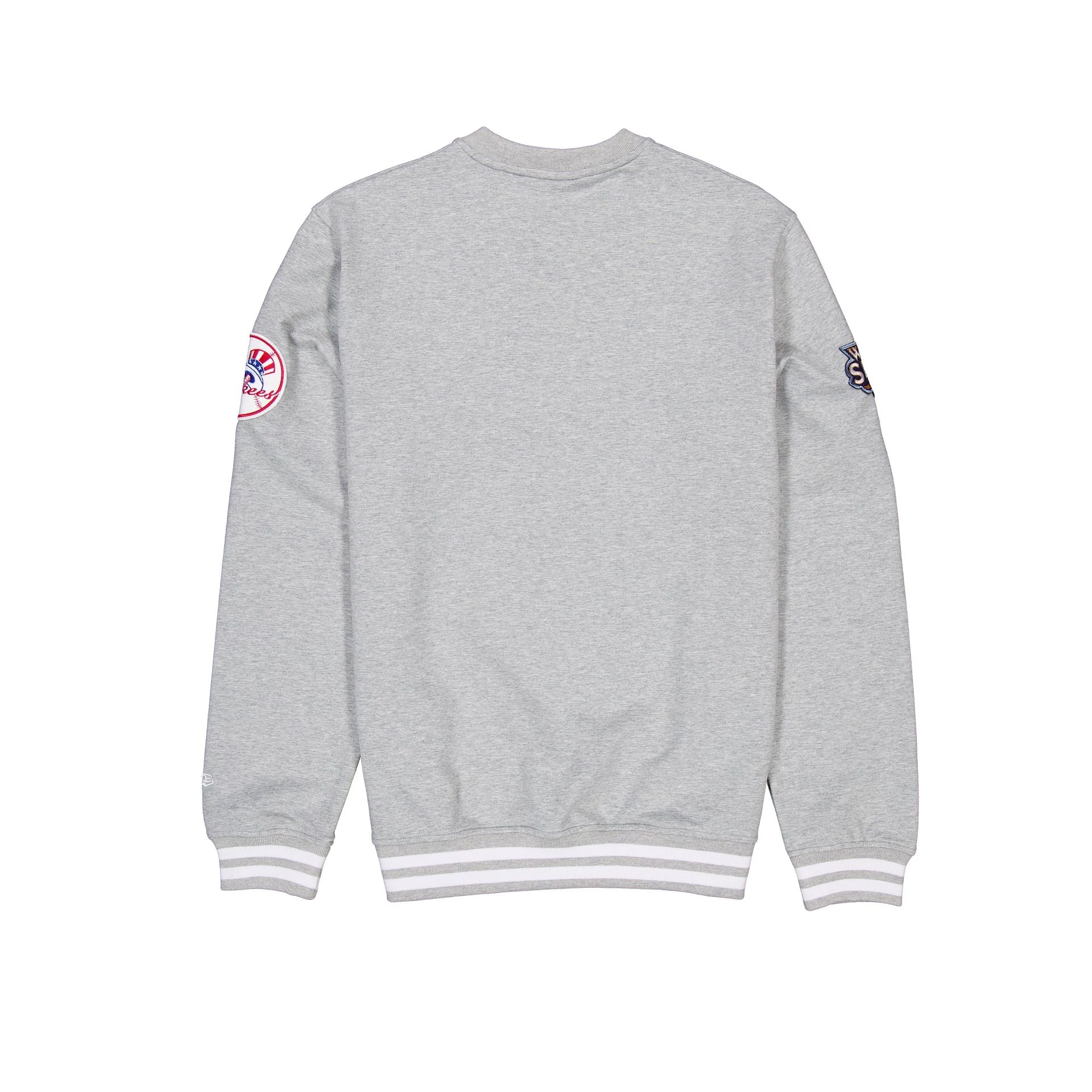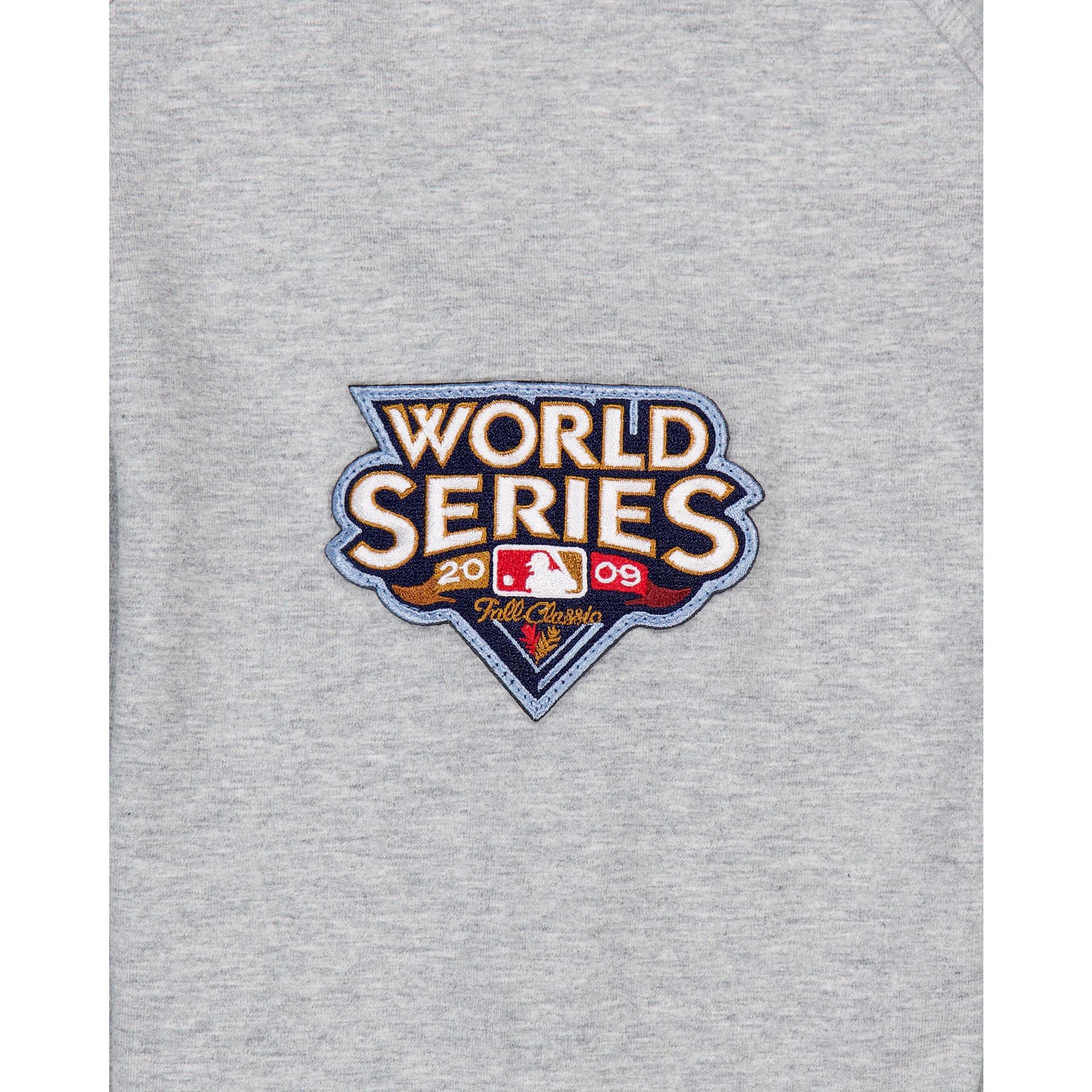 The New York Yankees Gray Logo Select Crewneck features an embroidered Yankees wordmark at the front panels with a matching team logo patch at the left arm and a 2009 World Series patch at the right arm.