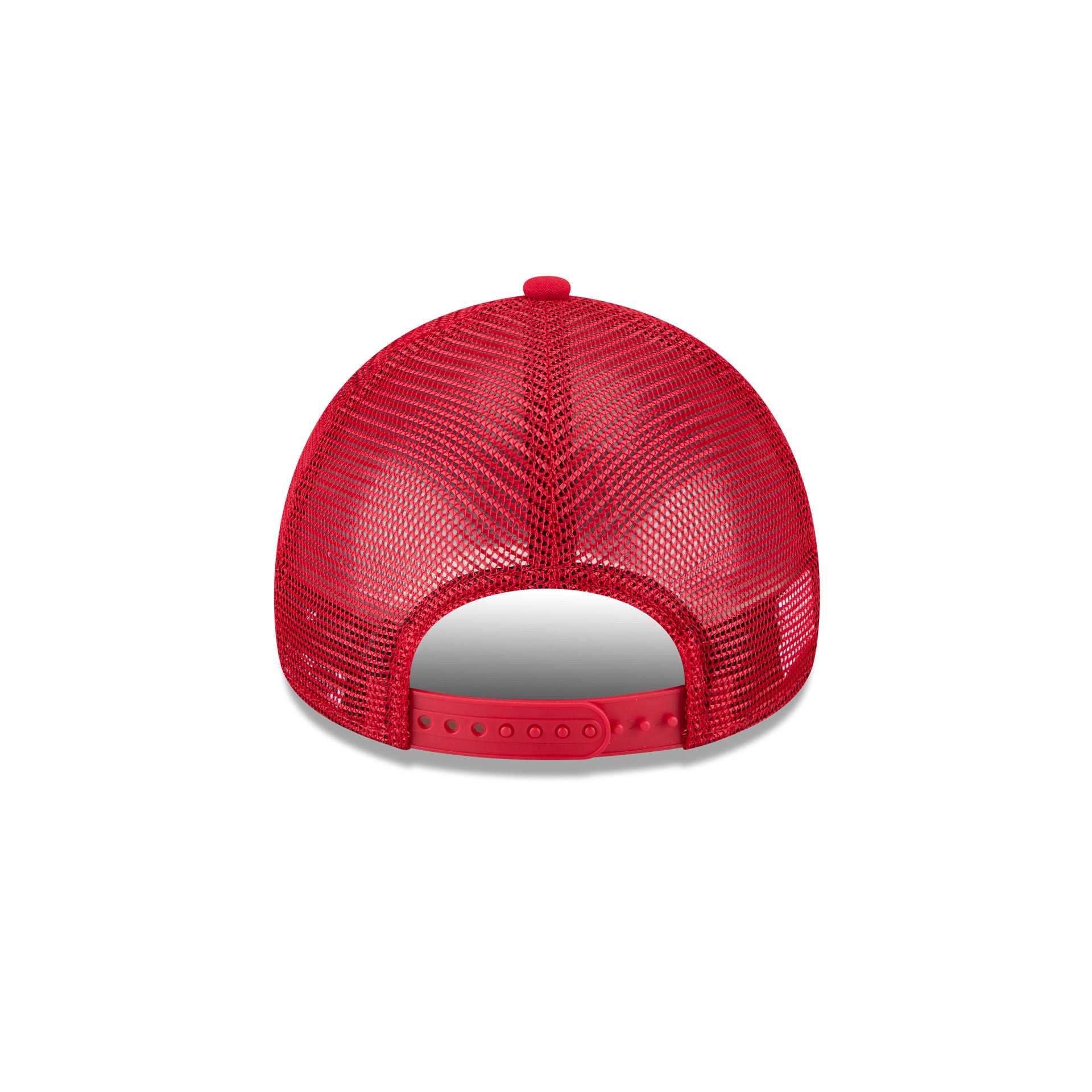 The Ohio State Buckeyes Go-To 9FORTY A-Frame Trucker features an embroidered Buckeyes logo at the front panels with a snapback closure at a mesh rear.