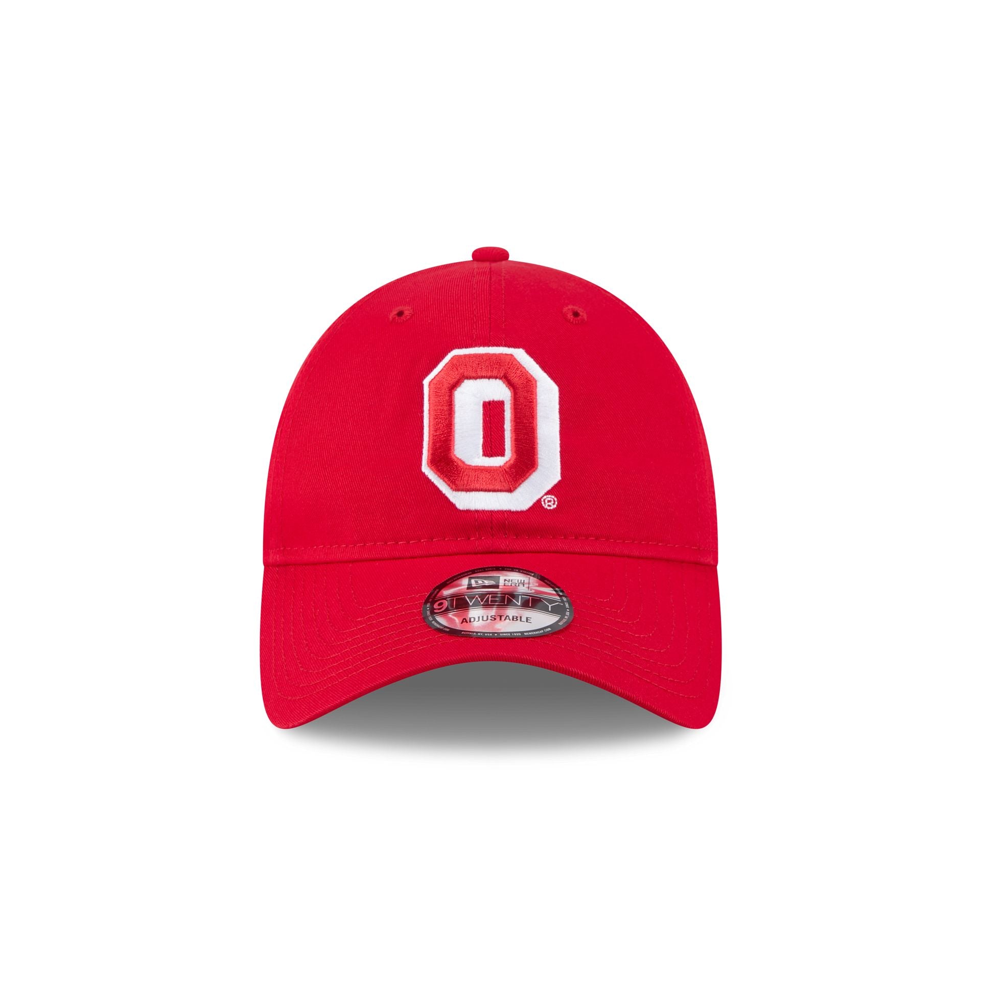 The Ohio State Buckeyes Go-To 9TWENTY Adjustable Cap features an embroidered Buckeyes College Vault logo at the front panels with an adjustable D-Ring closure at the rear.