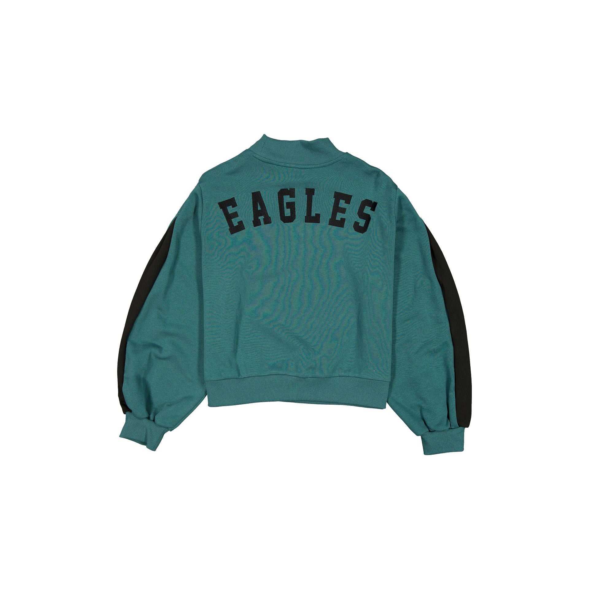The Philadelphia Eagles Sport Night Women’s Mockneck features an embroidered Eagles logo at the front chest with a script wordmark at the neck and a wordmark at the rear.