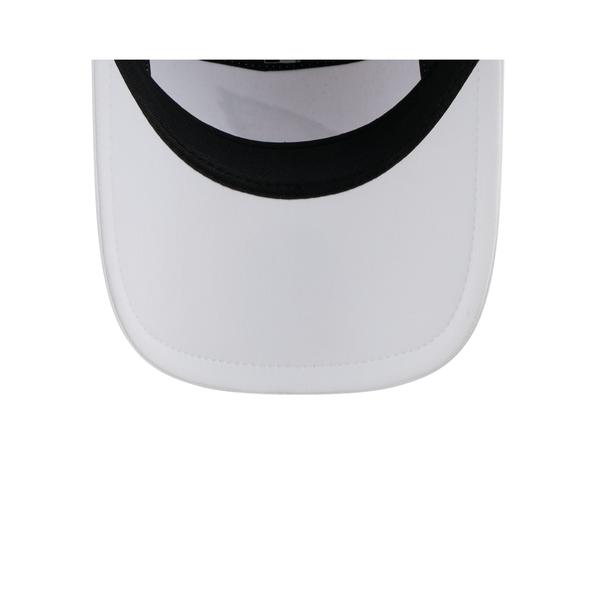 The Philadelphia Eagles White Poly Runner Cap features a heat sealed Eagles logo at the front panels with mesh side panels. Additional details include a silicone patch above an adjustable drawstring closure at the rear.