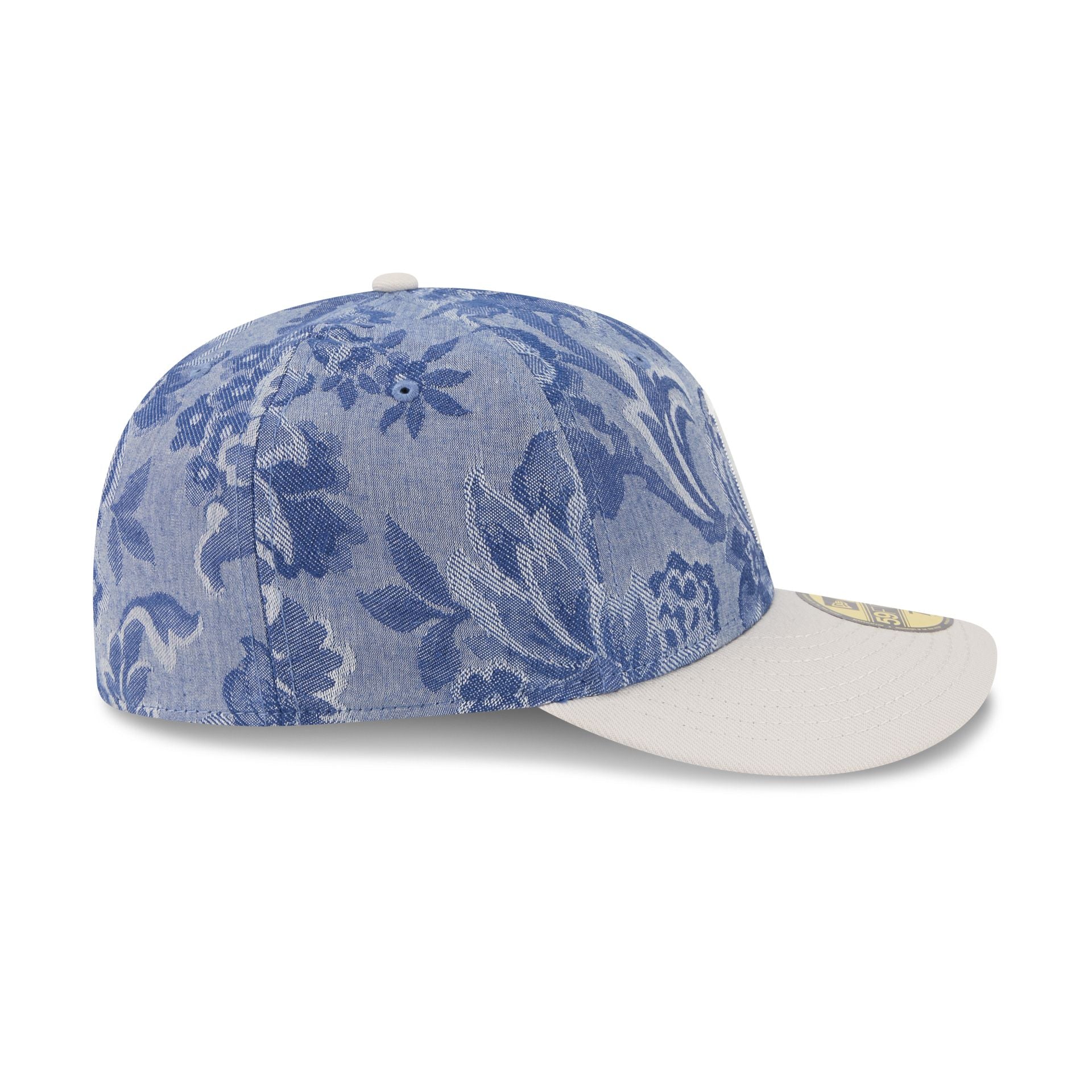 The Pittsburgh Pirates Two-Tone Denim 59FIFTY Fitted Cap features an embroidered Pirates logo at the front panels against a specialty Japanese milled gobline chambray fabrication from Three Looms Japan Fabrics throughout the cap. Additional details include an MLB Batterman logo at the rear and a gray undervisor.