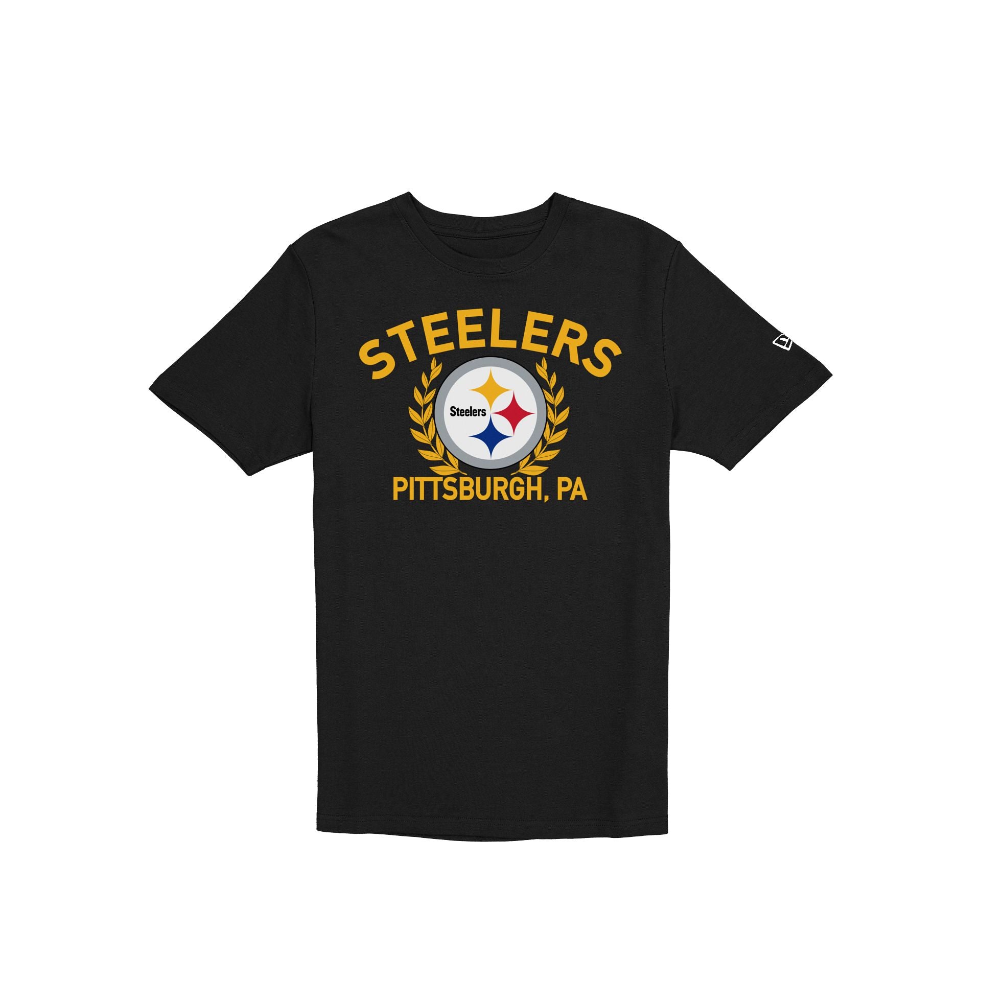 The Pittsburgh Steelers 2025 Draft T-Shirt features a screen-printed Steelers graphic at the front.