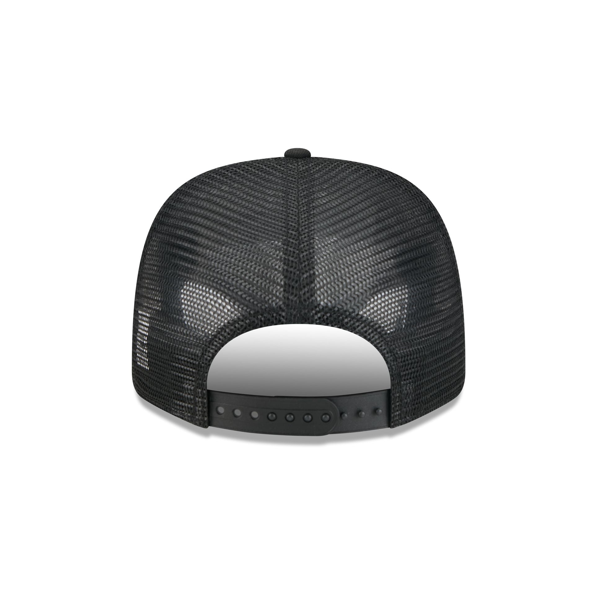 The RangeGoats GC Black 9SEVENTY Trucker features an embroidered RangeGoats GC circle logo at the front panels with a an adjustable stretch-snap closure at a mesh rear.