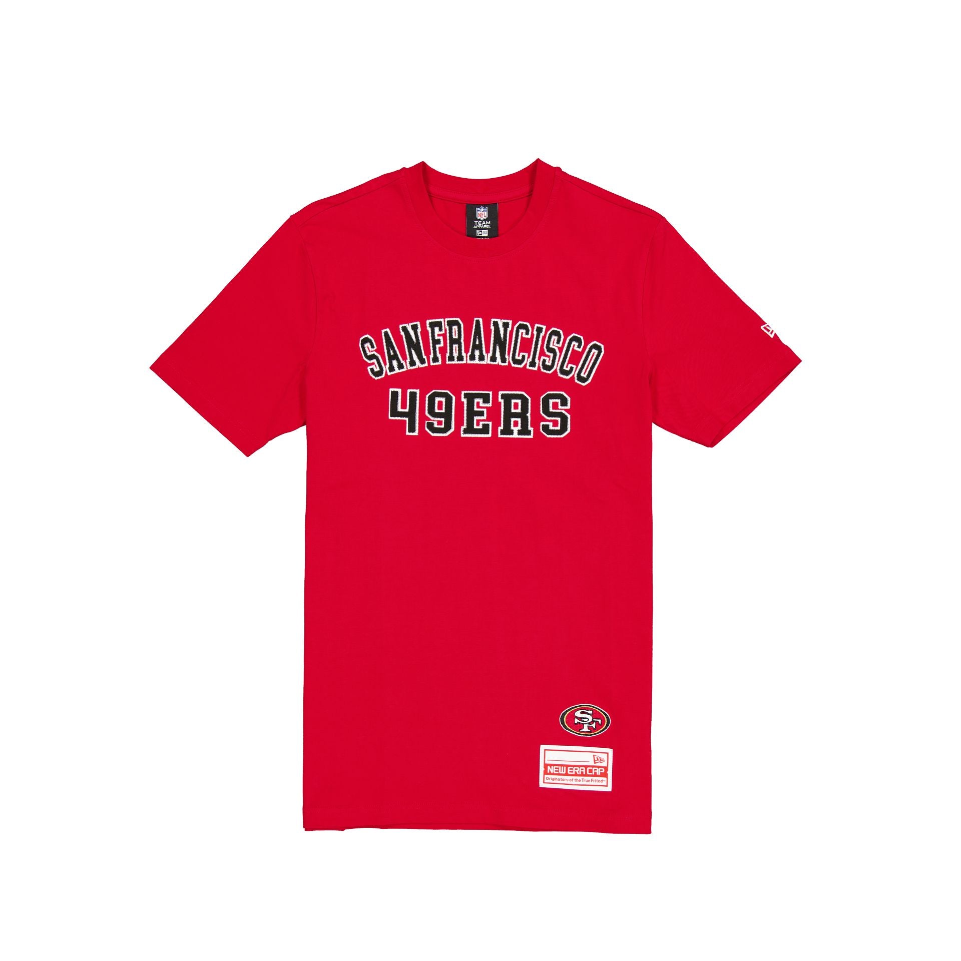 The San Francisco 49ers Team Color Logo Select T-Shirt features a zig zag stitched twill applique 49ers wordmark at the chest with an embroidered team logo above a New Era Cap jock tag at the left hip.