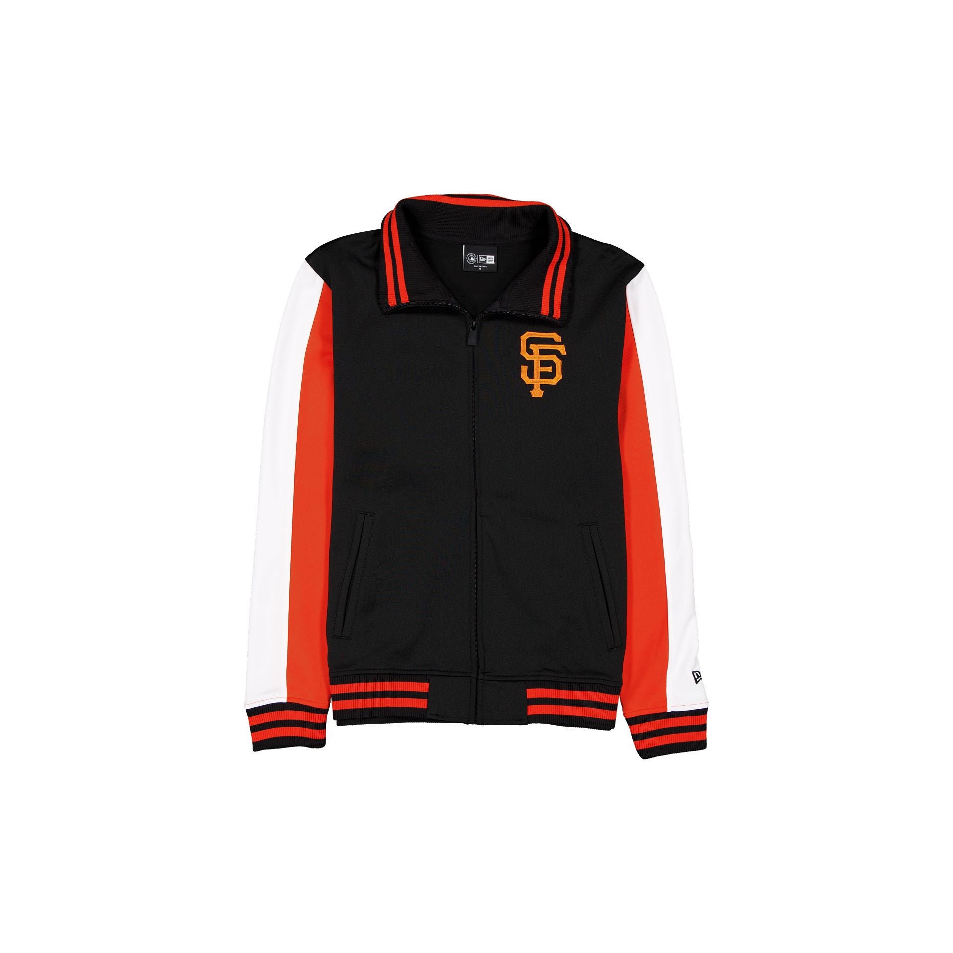 The San Francisco Giants Game Day Jacket features an embroidered Giants logo at the left chest and graphic at the back. Additional details include pockets and a zipper closure.