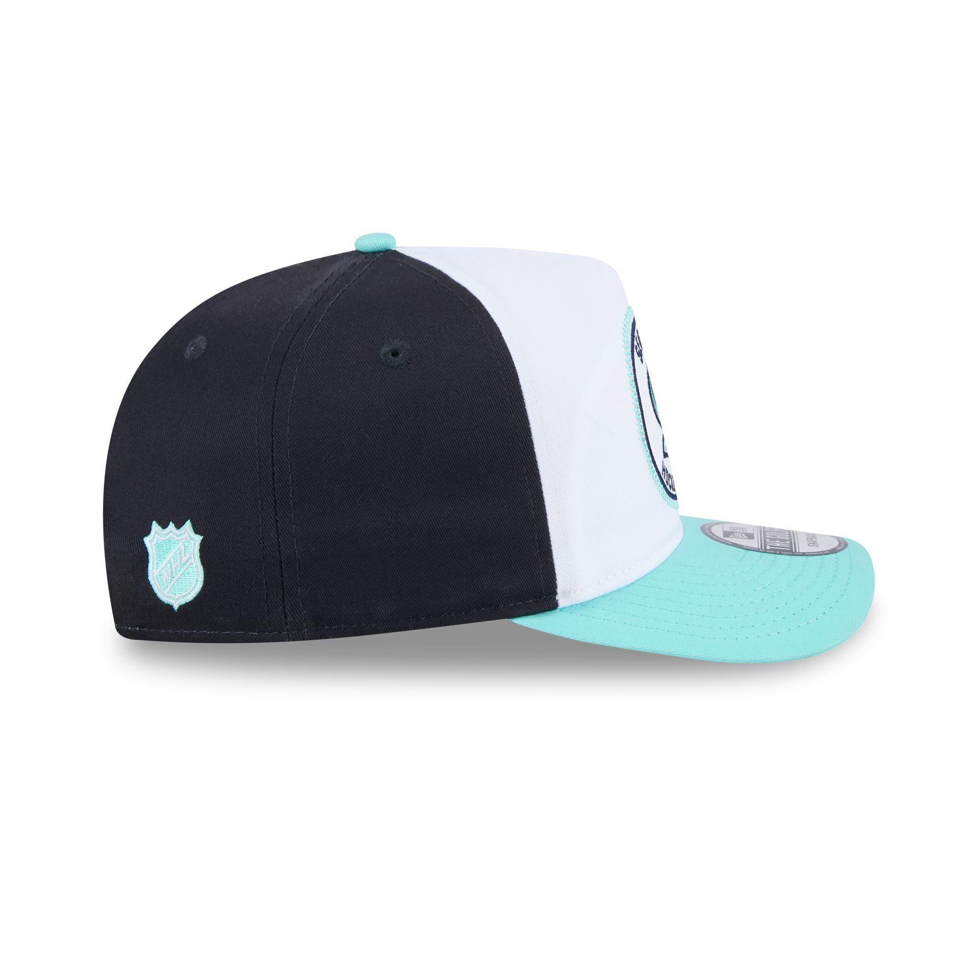 The Seattle Kraken NHL Pack Golfer features a Kraken Hockey Club patch at the front panel with a matching NHL Shield at the right of a snapback closure at the rear and a gray undervisor.