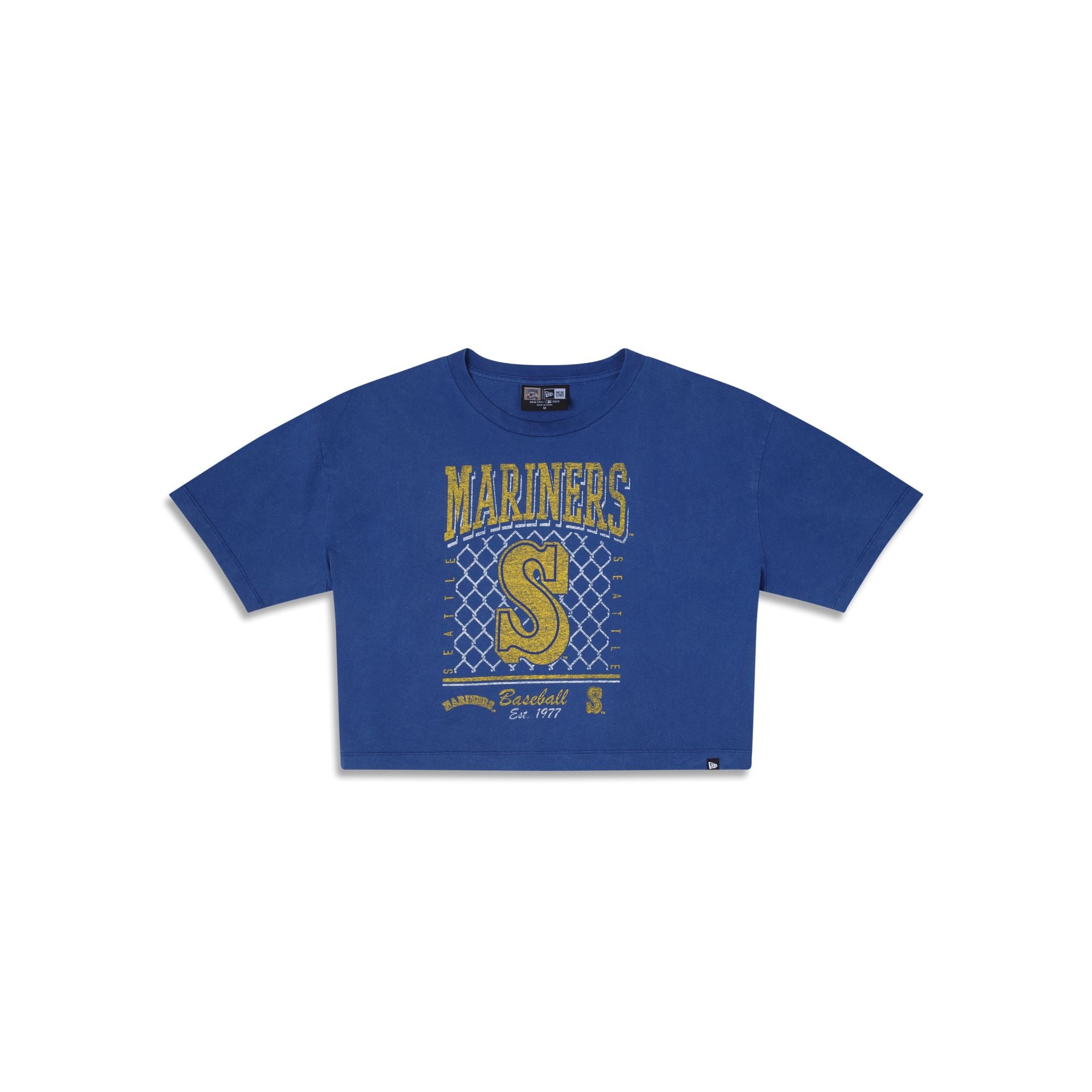The Seattle Mariners Old School Sport Women’s T-Shirt features a distressed screen-printed Mariners graphic at the front.