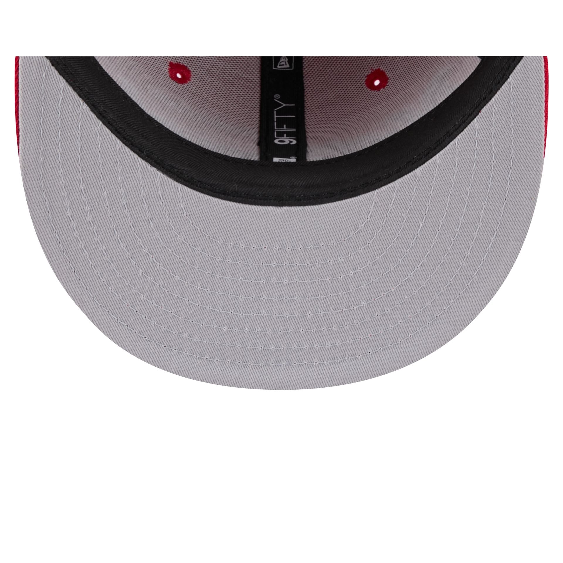 The Washington Nationals Kids 9FIFTY Snapback Hat features an embroidered Nationals wordmark at the front panels with a matching team logo at the right-wear side. Additional details include a gray undervisor and a snapback closure at the rear.