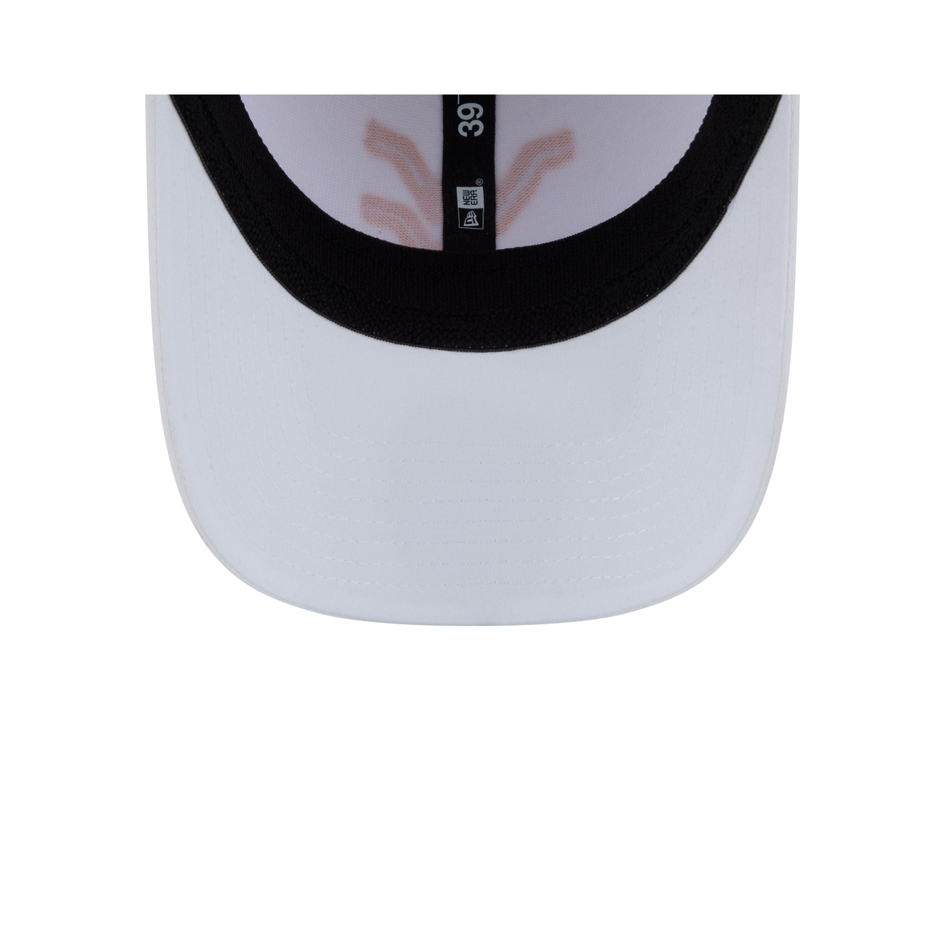 The West Virginia Mountaineers Optic White 39THIRTY Stretch Fit features an embroidered Mountaineers logo at the front panels with a team wordmark at the rear.